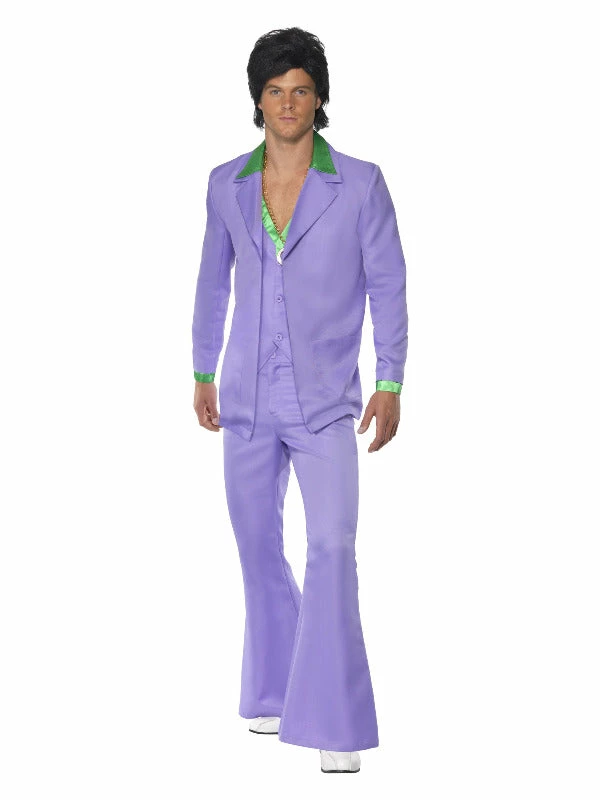 You can be part of that 70’s show in this Lavender 70’s flared suit! Complete with mock shirt. Great for 70’s themed parties.