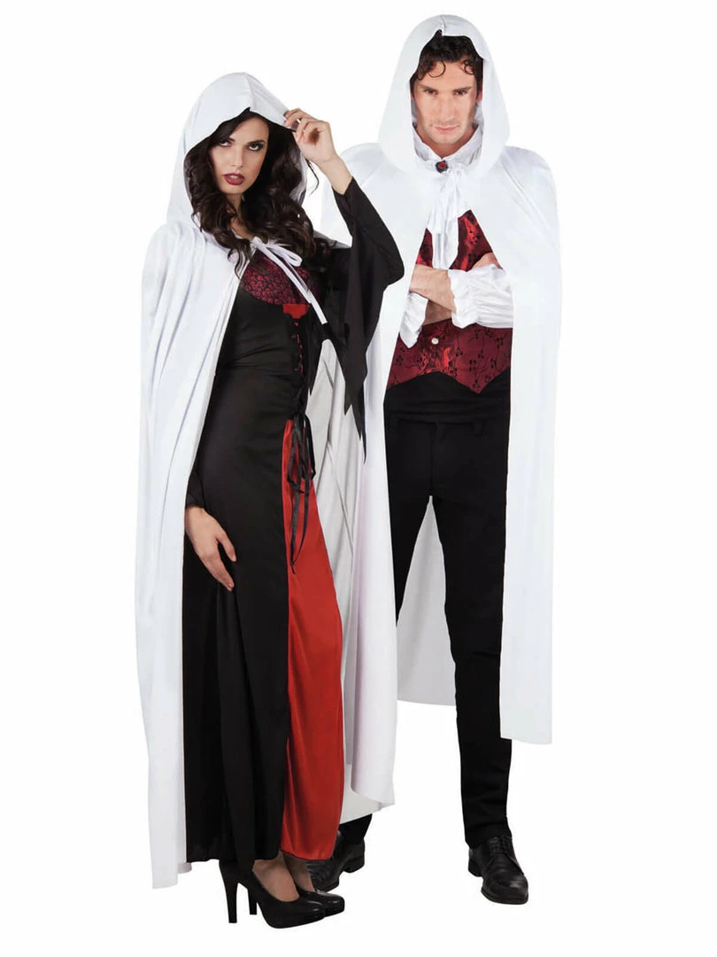 White hooded cape complete with hood. Versatile and easy to wear. Great for Masquerade and many more looks.