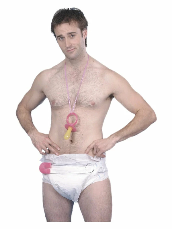 YOU BIG BABY! Have some fun (if you dare!) in this baby kit. Kit includes a jumbo nappy, safety pin and giant dummy.