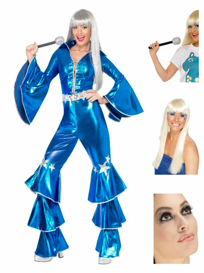 Keep the Eurovision alive in this disco inspired 70’s disco fancy dress costume. Costume includes a lace up jumpsuit. You’ll be the dancing queen all night!