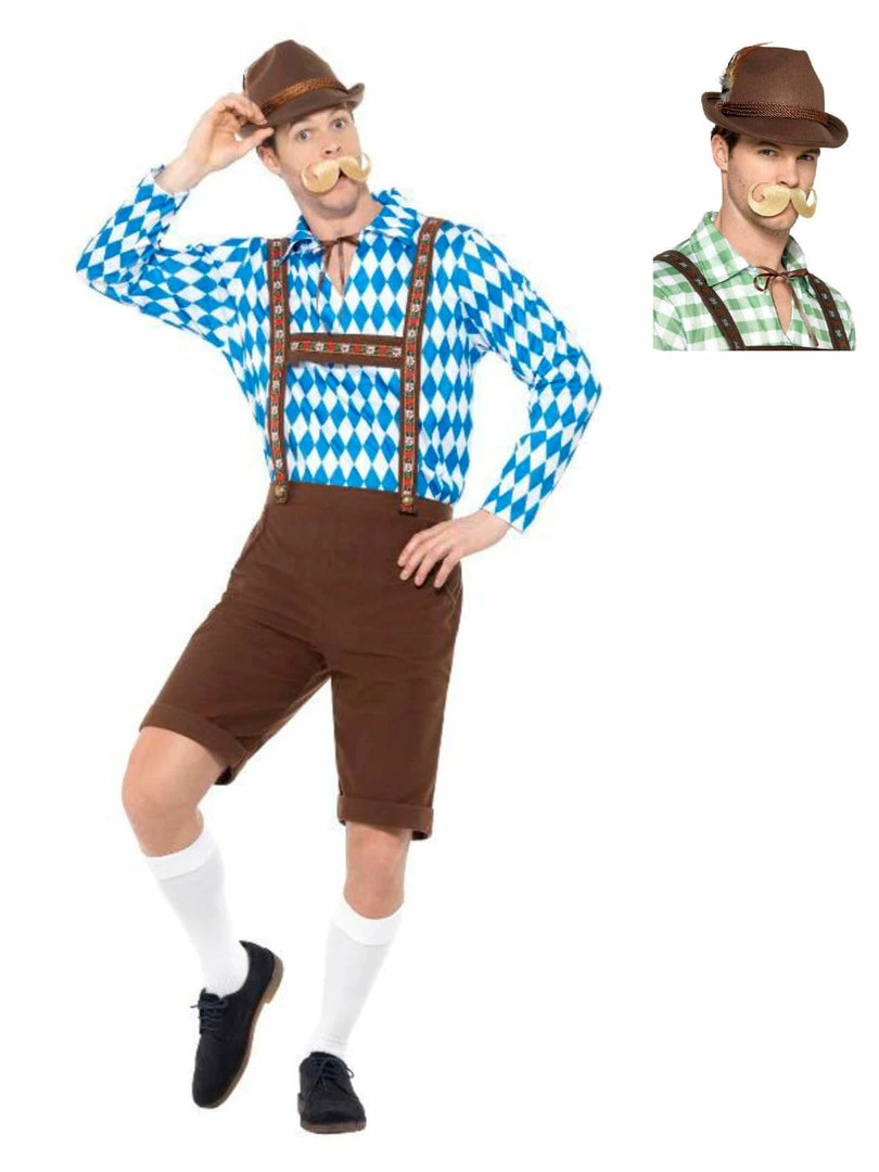 Be the jolly mountain man in this Bavarian Beer Man costume. With brown lederhosen and a blue & white diamond shirt you’ll be Oktoberfest ready in no time! Accessorise with a hat to complete the look!. PROST!