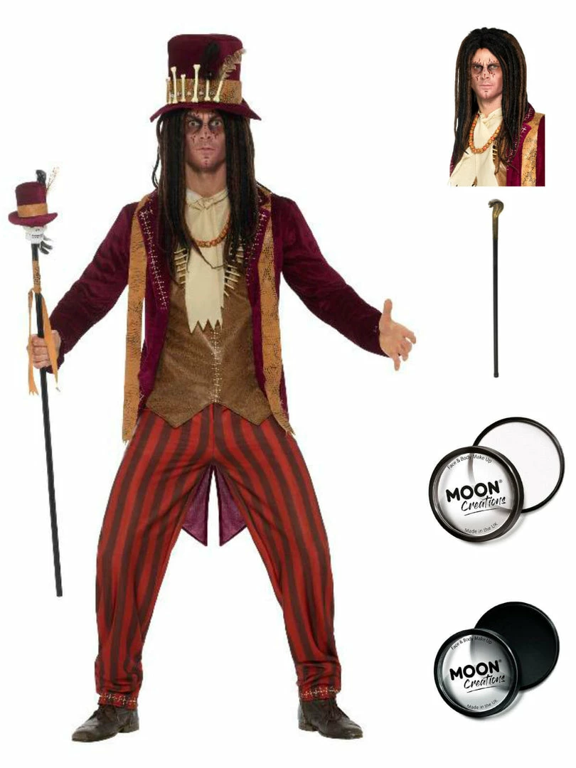 Look the part of a voodoo Witch doctor but don’t play with the DARK MAGIC! This costume comes with Red, Trousers, Jacket, Waistcoat, Necklaces & Hat. Team with Voodoo dread wig for an authentic look!