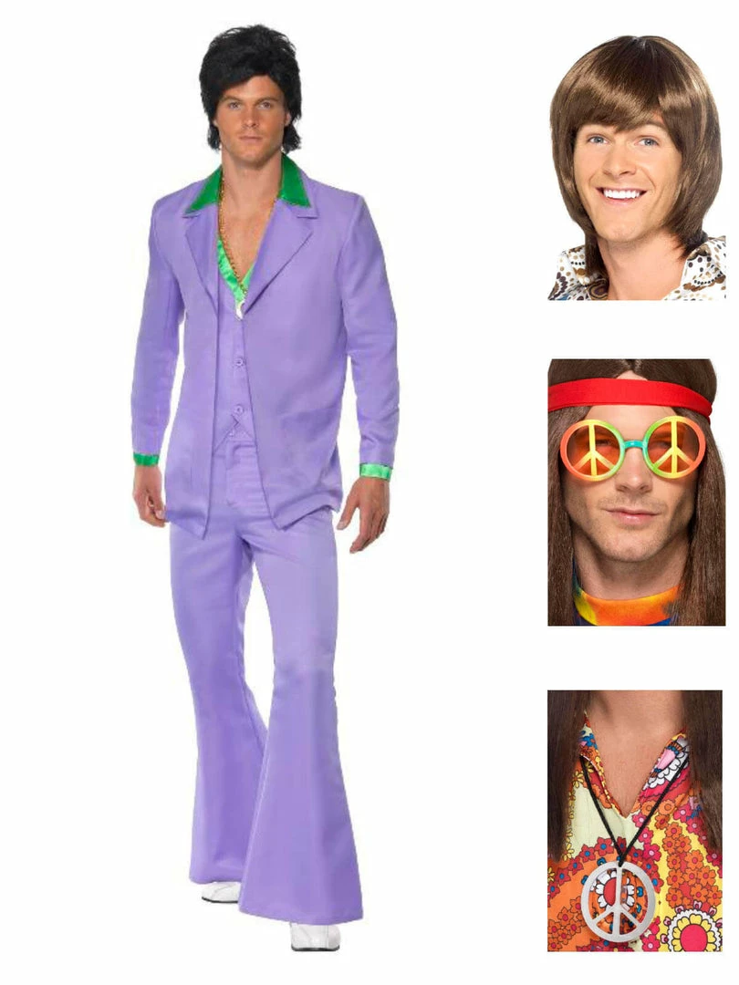 You can be part of that 70’s show in this Lavender 70’s flared suit! Complete with mock shirt. Great for 70’s themed parties.