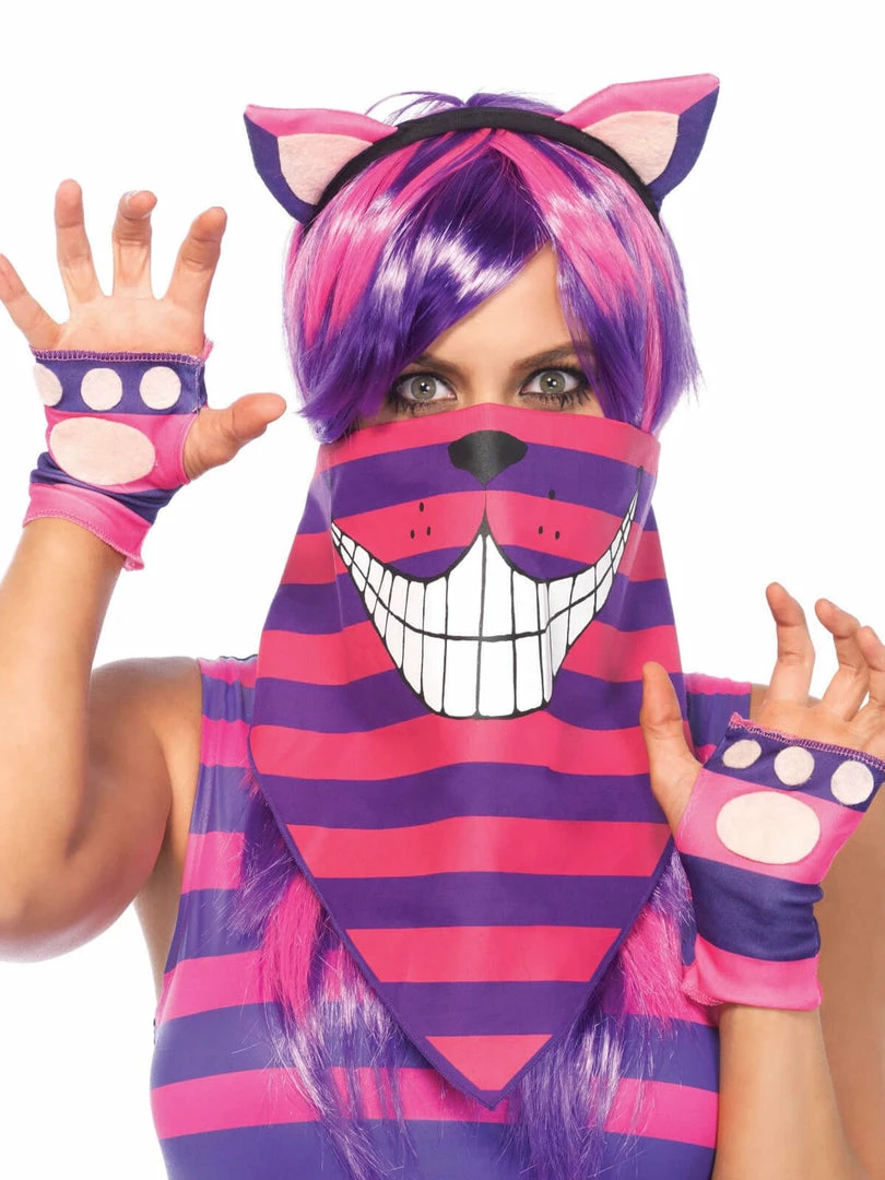 Keep smiling with this Cheshire Cat bandana. Great for costume or everyday wear.