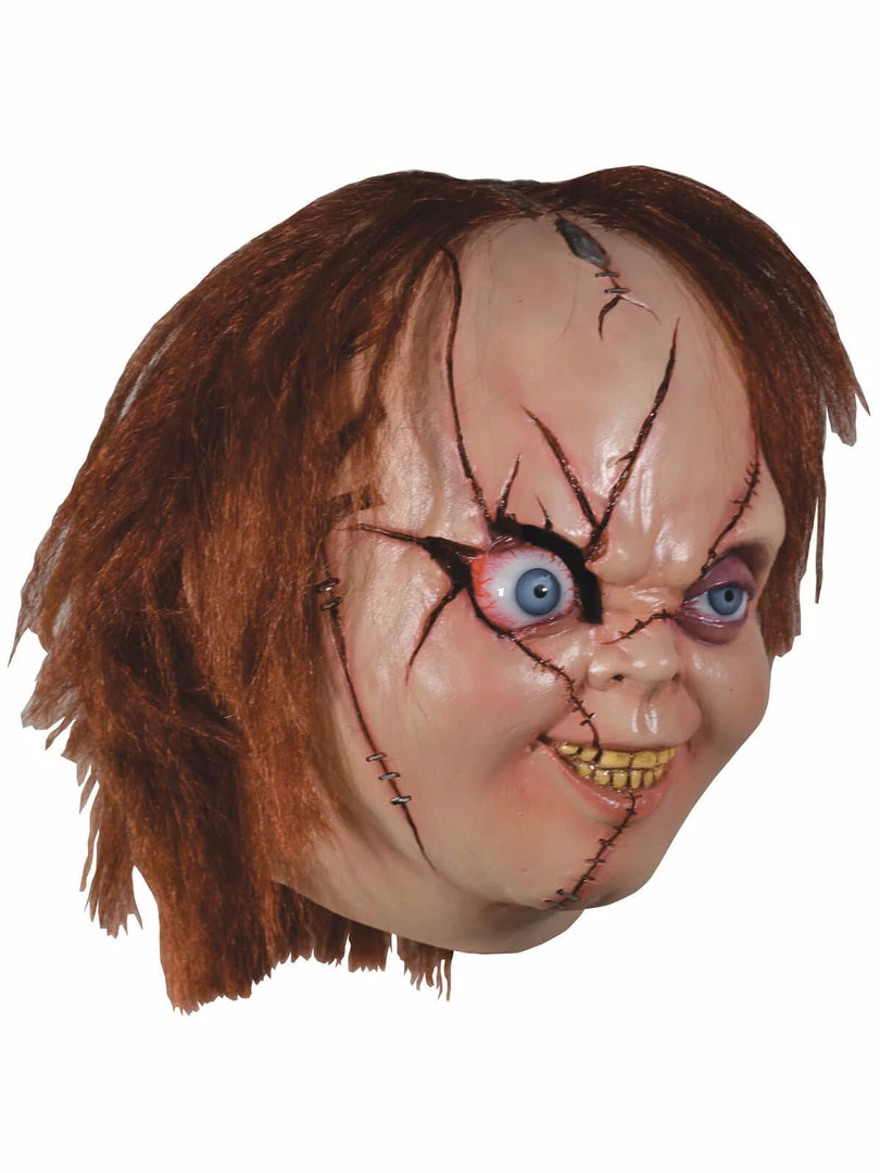 WANNA PLAY?! Complete your Chucky costume in this overhead latex mask. Mask comes with red hair and stitches detail on the face.