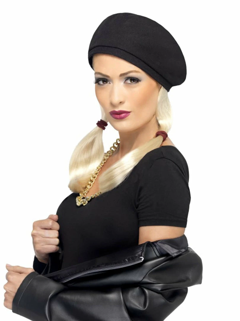 This gorgeous 90s grunge girl wig is ideal for any blonde bombshell wannabe and lady looking to bring back the sweet 90s! This awesome wig is platinum blonde with bunch style. Also comes with a black- beret looking hat to finish off the style!