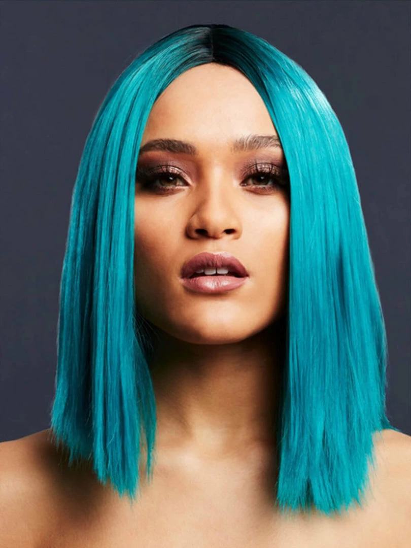 This Fever Kylie wig is a high quality two toned blend in Teal. It is both hand Washable and heat stylable up to 120 degrees.
