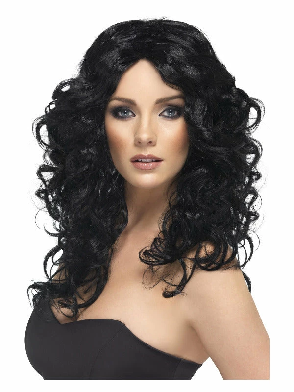 Transform your appearance wearing this black glamour wig. This long and wavy black wig will have you looking like a bombshell in no time!