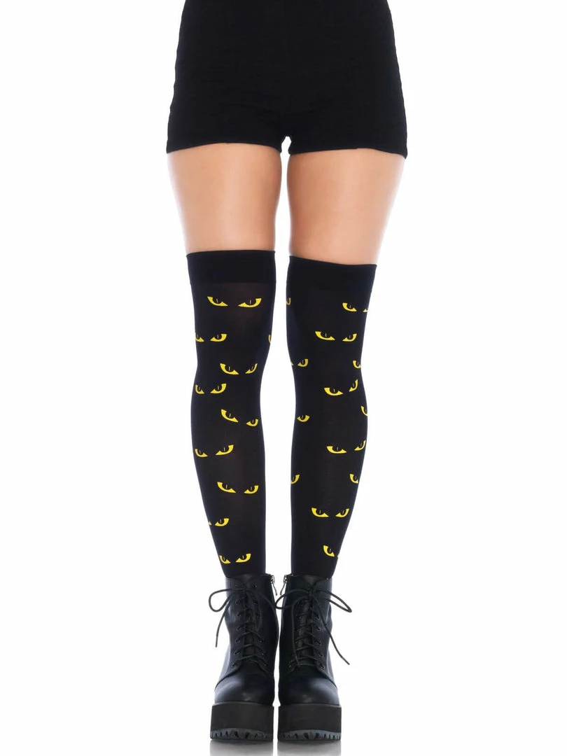 Get Halloween ready in these fun patterned thigh highs. Look cute and spooky!
