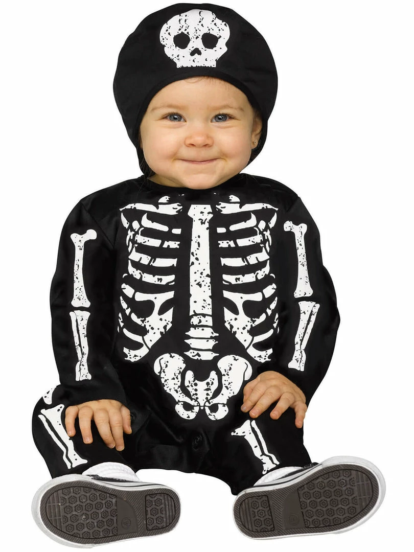 Transform your little one into a spooky skeleton with our baby-bones costumes. Available in 3 different colours your baby bones will be ready for Halloween.