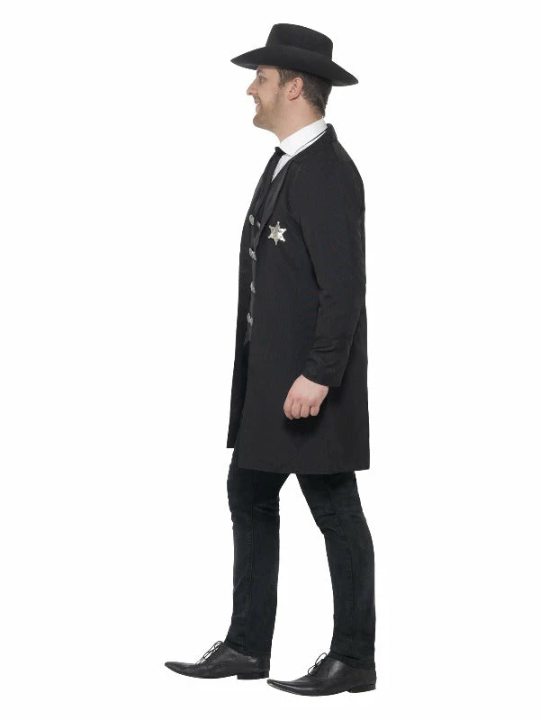 Look like the coolest Cowboy in the wild west in this sheriff costume. With a black jacket, waistcoat, neck tie and hat, simply add jeans and cowboy boots to complete your wild western look.