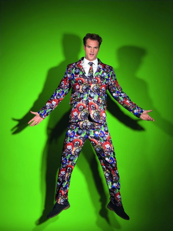 Looks like a smart suit from a far but when you get up close you’ll see how terrifying it is! This Evil clown suit comes with a jacket, trousers and tie.