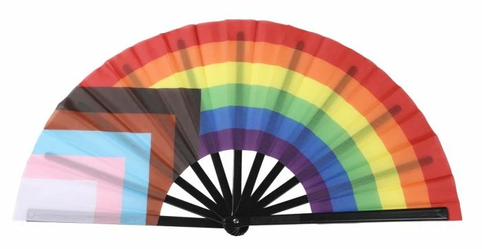 Pride Fan in Pride rainbow colours along with progressive Pride colours