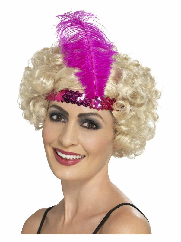 Charleston all night long! Complete that 20’s look with this pink flapper headband with feather.