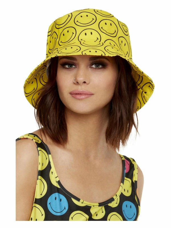 They say the 90’s are back so why not Rave in style in this Smiley Printed Bucket Hat! Go to your next festival or 90s party in this Smiley bucket hat. Comes in yellow with black smiley faces.