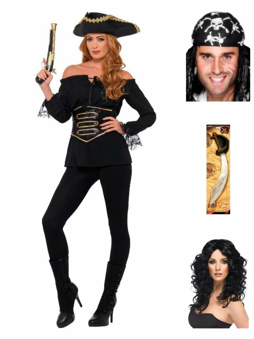 Shiver me timbers! Get on board with this deluxe ladies pirate shirt with lace up waist cincher. Team with black pants or skirt and accessorise with pirate gear such as hat, eye patch, money pouch and a bottle of rum!