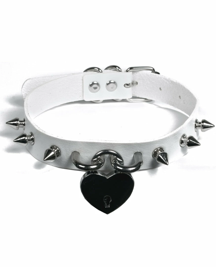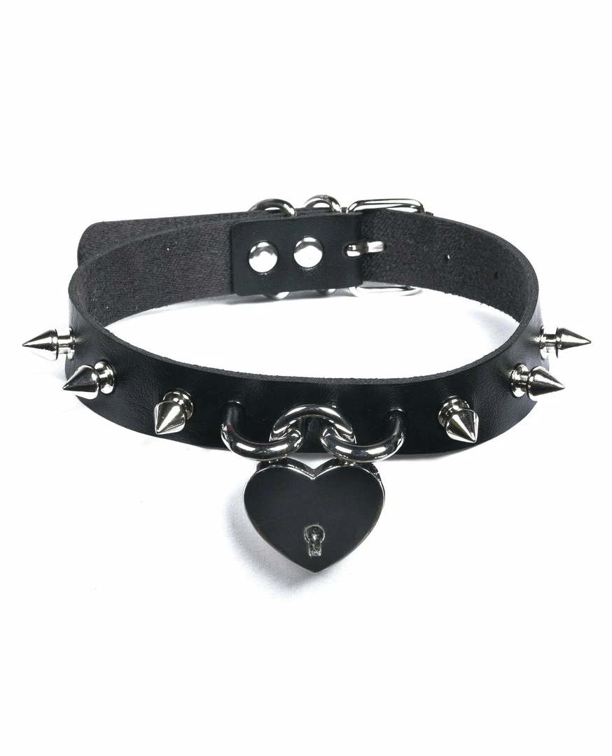 A mix of naughty & nice, this Cyberdog black faux leather collar features a metal heart & spikes. Great for Clubbing, Festival and Alternative wear.