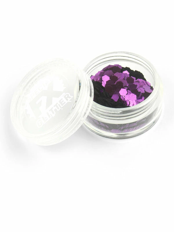 This large Purple confetti glitter is so versatile for many looks. Stick to skin with any skin adhesive for an avant garde look.