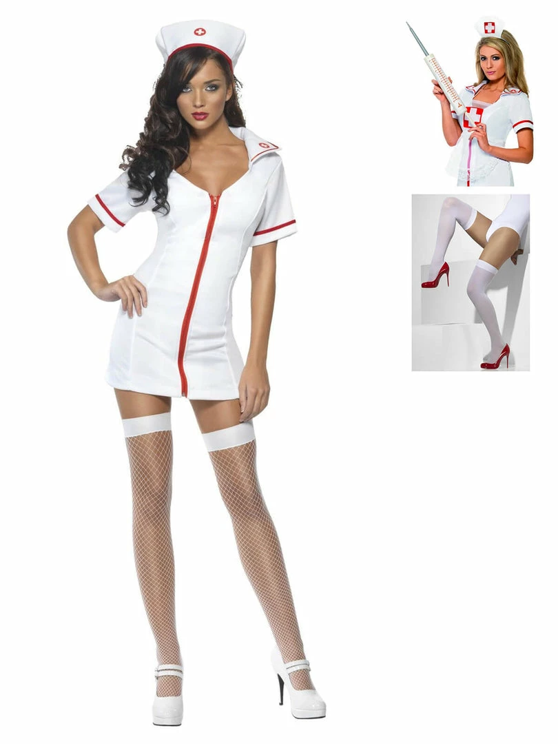 Have the patients queuing up to see you in this Fever Sexy Nurse Costume. It’s a perfect costume for you to feel dressed up and sexy. Included is a dress and hat. Check out our range of tights to complete this look.