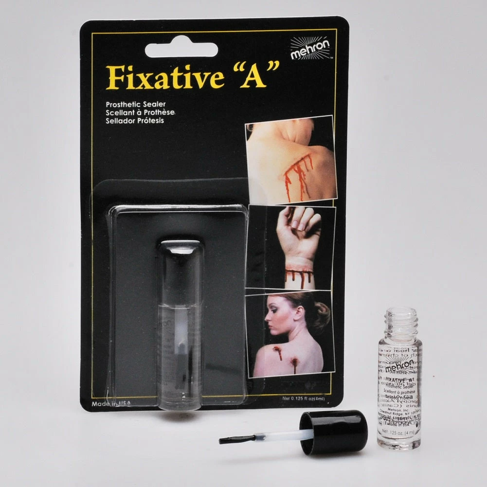 Mehron Fixative “A”™ is a clear liquid plastic sealer for Modeling Wax, Putty/Wax and SynWax.