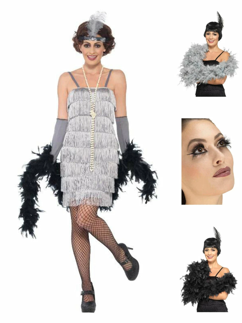 Look like you’ve just stepped out of Gatsby’s house in this silver flapper costume. Costume comes complete with dress, headbandand and gloves. Finish the look with tights, necklace & feather boa!