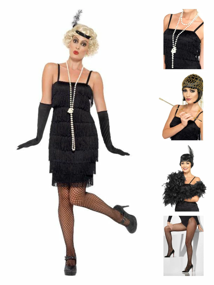 Look like you’ve just stepped out of Gatsby’s mansion in this black flapper costume. Costume comes complete with dress, headbandand and gloves. Finish the look with tights, necklace & feather boa!