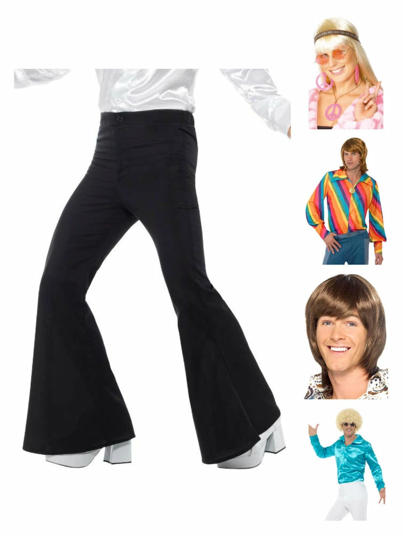 These mens black flared trousers will be the making of any retro costume. Great for 60’s and 70’s looks.