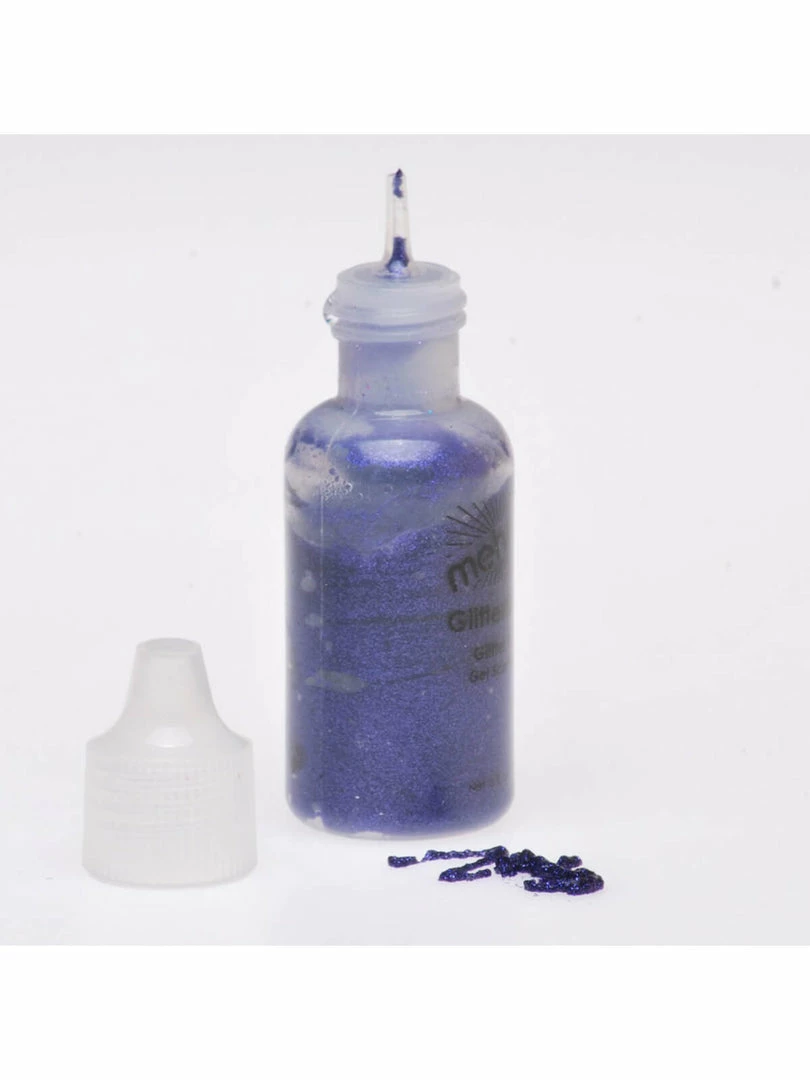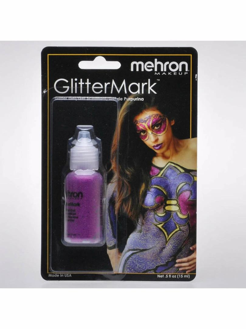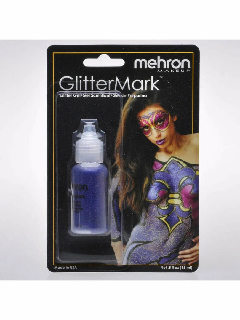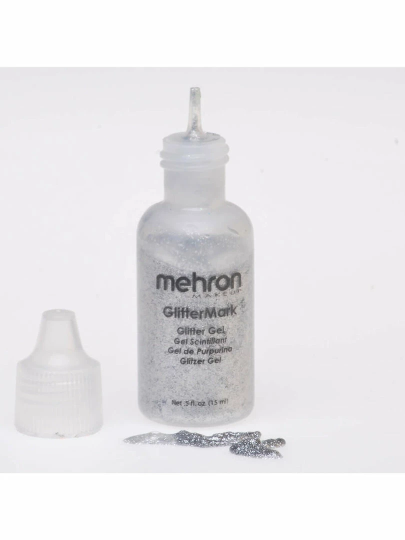 Mehron GlitterMark™ is formulated with a fine cosmetic grade glitter and suspended in an alcohol-free water based gel, which allows the artist to create fine lines and details. Great for highlights, body jewelry, tribal designs and henna designs. It has a highly pigmented coverage and is paraben free.