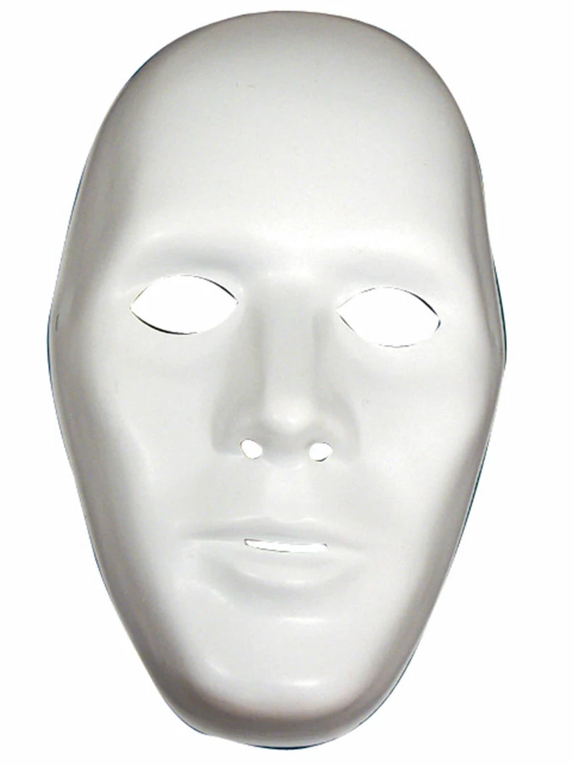 A neutral faceless white mask with a robotic male structure, terrifying!