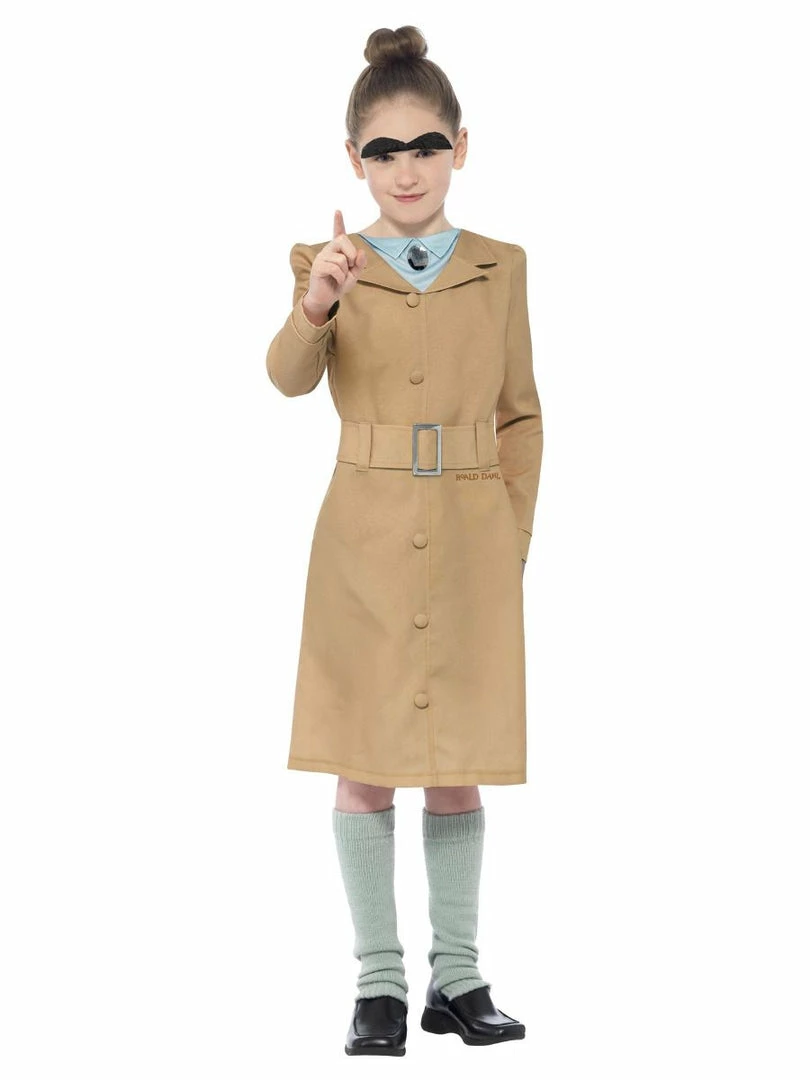 Roald Dahl Miss Trunchbull Costume, Beige, with Dress, Leg Warmers & Eyebrow