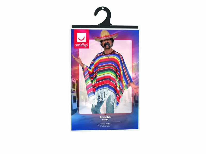 Arriba arriba! Planning a Mexican themed party? Get the look with this Multi-Coloured Poncho. Don’t forget your sombrero and tash! Tequilla not included!