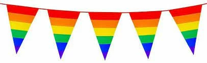 Celebrate Pride in your home, office or garden with this rainbow flag bunting. Flags in traditional bunting triangle shape. 8 meters long with 14 flags in total.