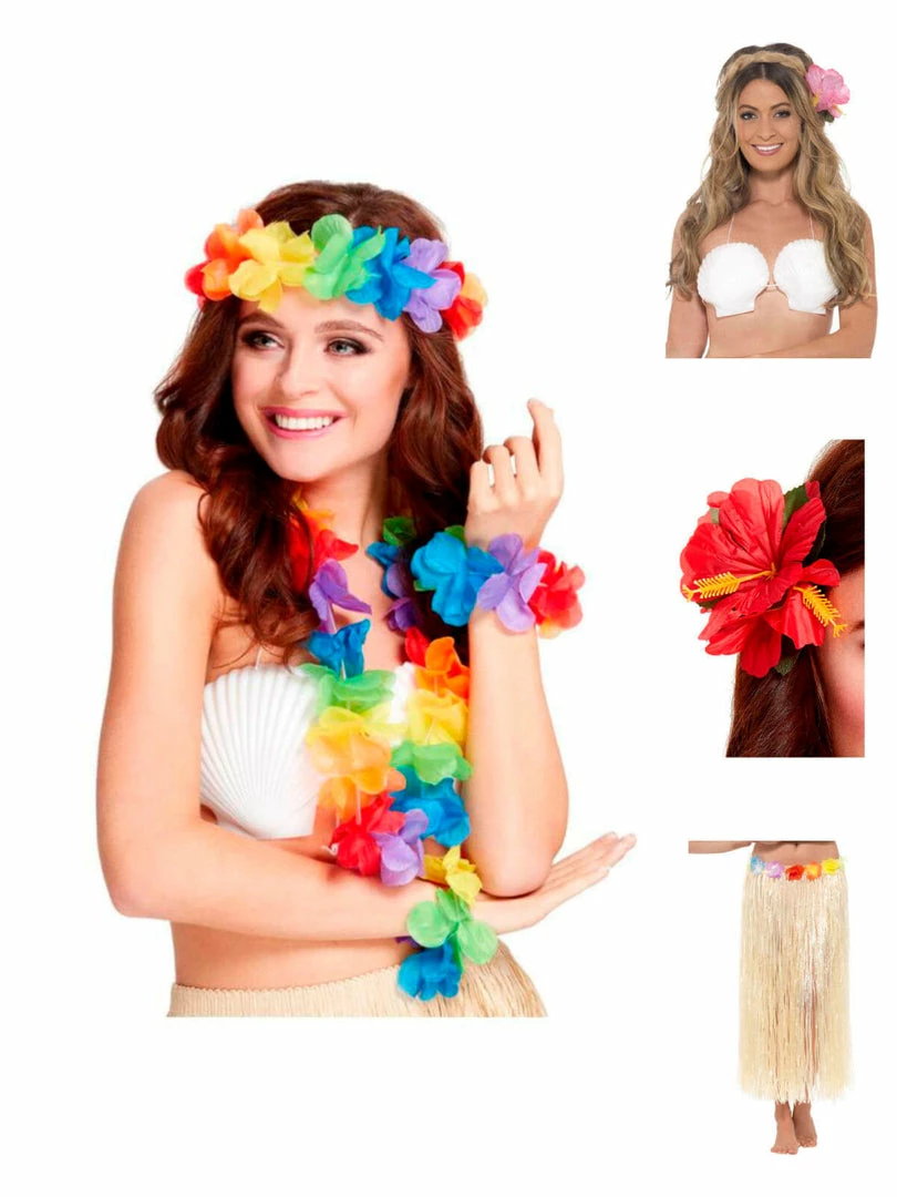 Party in style in this Hawaiian set consisting of a rainbow garland, headband and wristband. Great for Luau parties, Pride or Festivals!