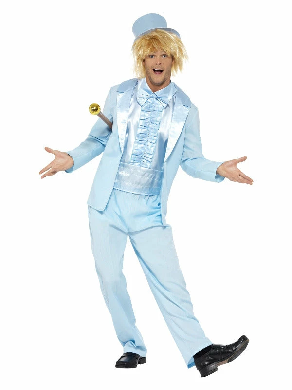 Be the dumbest dude at that 90’s party in this light blue satan tuxedo jacket and trousers with mock shirt & hat! Team up with a mate for an even dumber look!