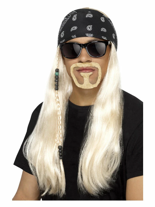 Rock out in this Hard rocker kit! Complete with Blond wig, bandana, beard and glasses. You have 80’s USA wrestler, hard rocker written all over you!