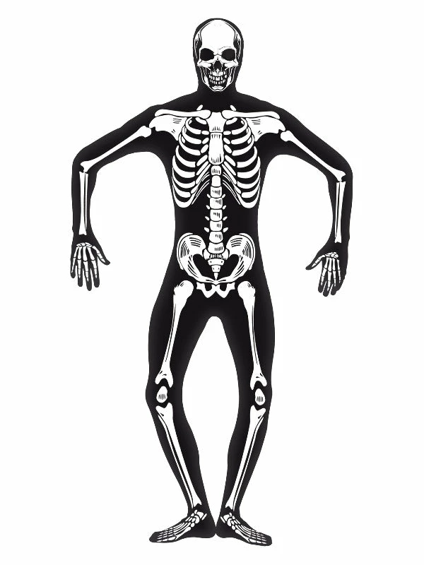 Are you brave enough to wear this Skeleton Glow in the Dark Second Skin Costume? This morph suit is perfect for Halloween, stag parties and festivals. Costume comes with a concealed fly and under chin opening.