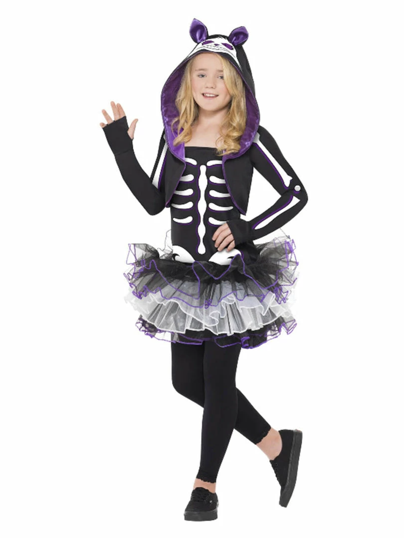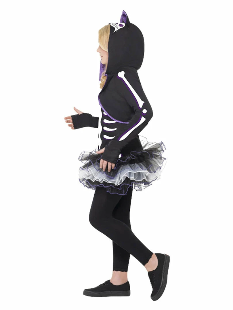 Skelly Cat Costume, Black with Dress and Shrug with Hood