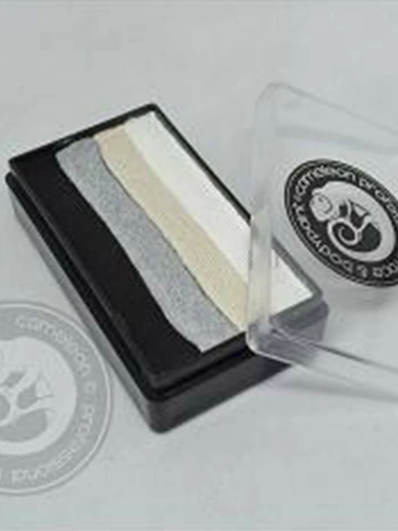 Cameleon Body Paint has the best coverage and brightest colours! This make-up can be applied with sponge or brush and is easily removed with soap and water. When applied the make-up will last all day without cracking or fading. Use a small amount of water to work with Cameleon using a sponge or brush. Cameleon is not water proof and can leave a residu after washing of. Some colors have strong pigments that wash of a bit harder than others. All our products are manufactured according the EEC and FDA regulations. All Baseline products have been approved by the EU & FDA institutions.