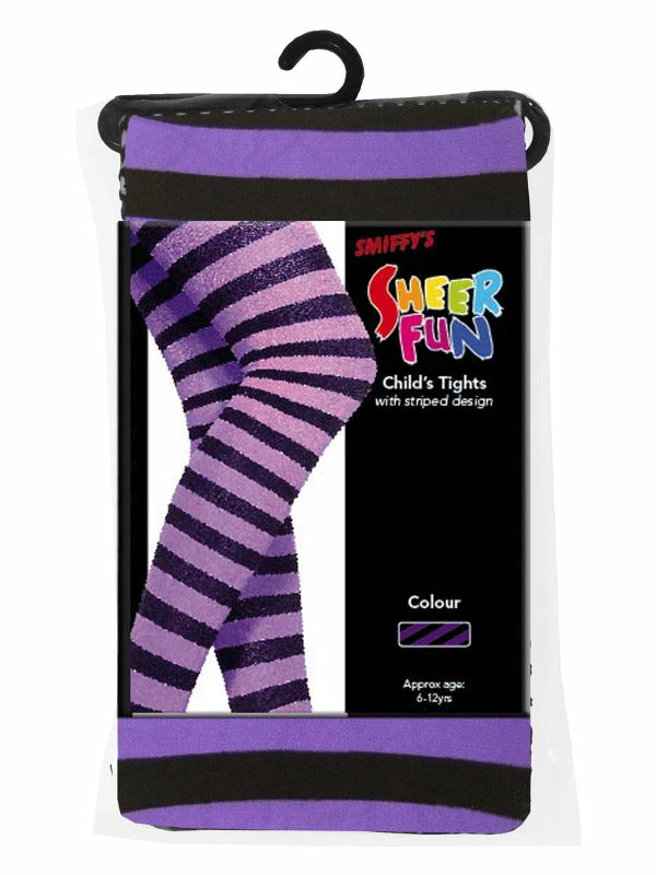 These witchy purple and black striped tights are a prefect accessory for Halloween!