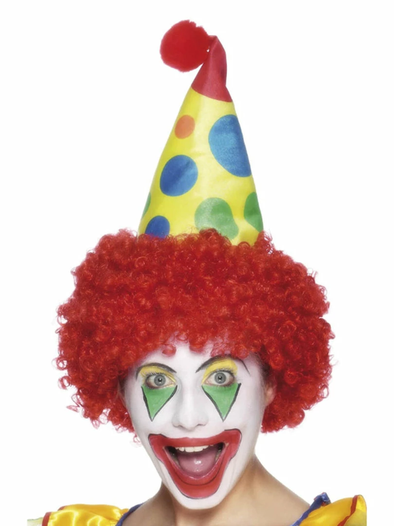 start clownin around in this red clown hat with attached wig. The perfect accessory to add some fun to your circus lok.