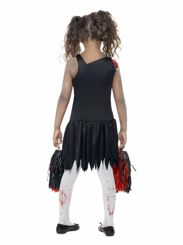 Raise a cheer for the un-dead in this scary Red & Black Kids Zombie Costume. Dress up as the captain of the zombie cheerleaders and shake those pom-poms. When it comes to Halloween, this Kids Zombie Costume is on the winning side! Tie your child’s hair in bunches and add zombie make-up to get into the cheerleading spirit.